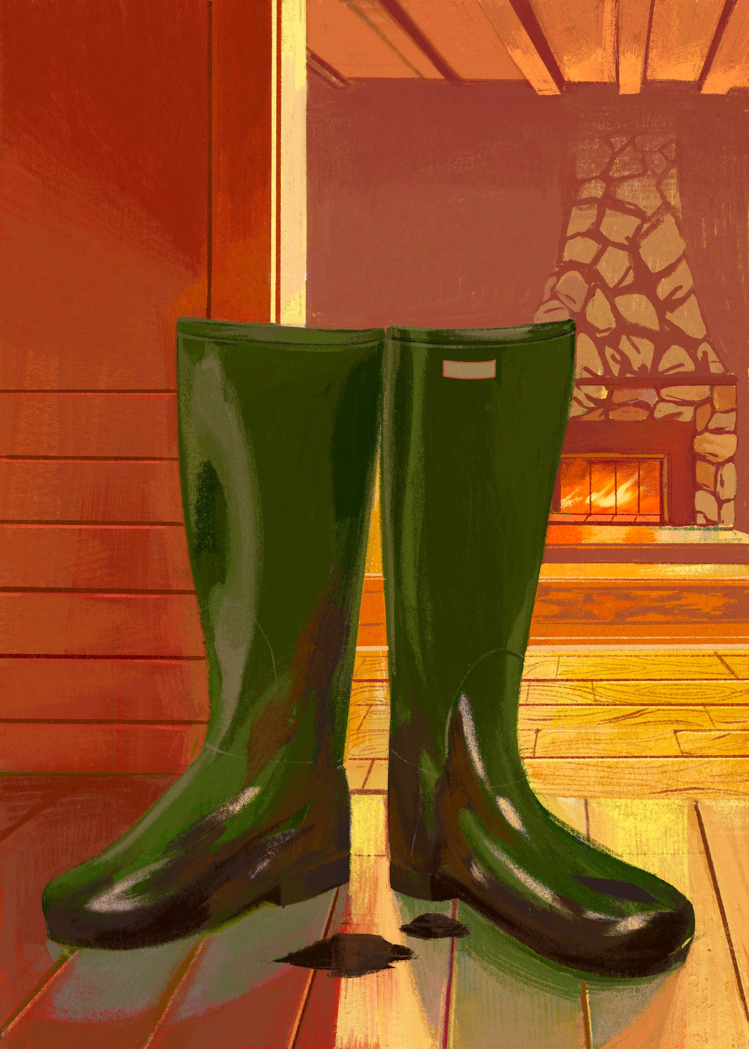This was for 2 images for Yankee Magazine’s March/April issue for a piece about Mud season which I had never heard of (being from the land of everything is a little wet all the time). The fee was for 2 illustrations, a lede and an inline. The inline was possibly going to be a spot so I included a sketch that was spot-illustrationy (the boots).