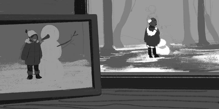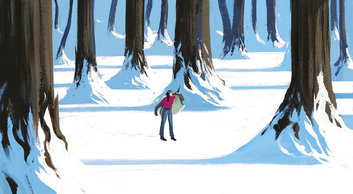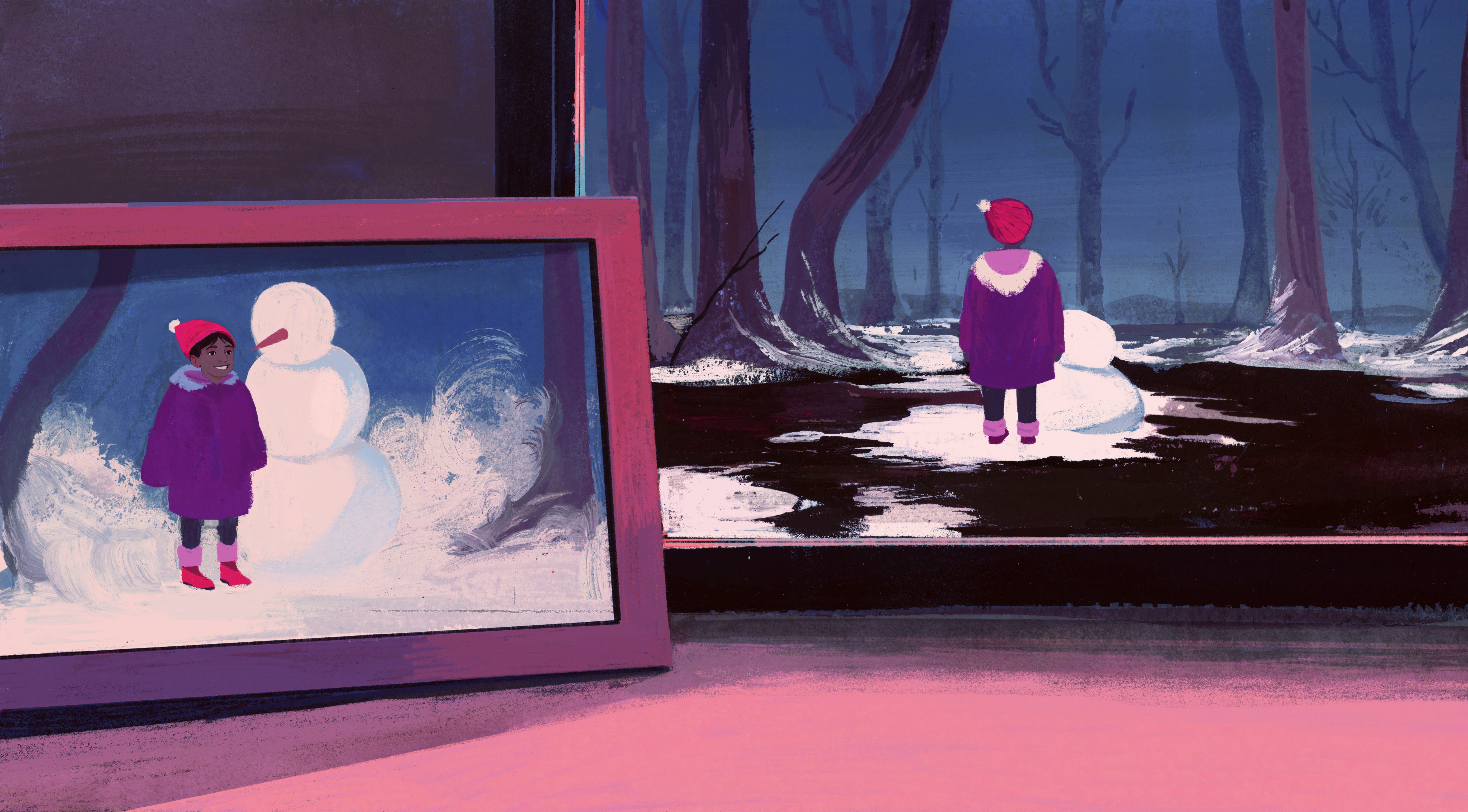 Rebecca is my favourite art director to work with. This piece was about the “death of snow” and they wanted something moody/reflective. Weirdly I had done an illustration for a version of this topic as a personal, unpublished piece but decided not to pitch it. The angle of that was more about appreciating winters and snow while they last where as this was about noticing weather patterns that had already changed. Sketches + Old finished piece below.